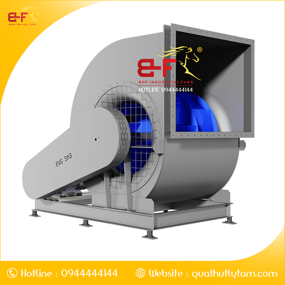 Quạt ly tâm lưu lượng được thiết kế cánh đôi để tạo ra lưu lượng gió cực lớn, truyền tải không khí có áp nên thường được sử dụng cấp thoát không khí theo đường ống dẫn trong những tòa nhà cao tầng, tầng hầm hay dùng để hút khói, bụi, nhiệt phòng cháy chữa cháy, những công trình phức tạp khác. Ngoài ra, cánh quạt còn được cân bằng động học và truyền động gián tiếp giúp quạt hoạt động êm ái, vòng quay thấp tạo tiếng ồn nhỏ, vỏ xoắn ốc, thiết kế tinh tế, ít rung và vận hành ổn định.