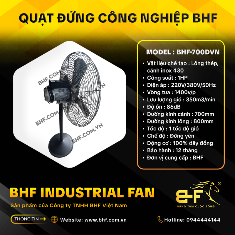 • Vật liệu chế tạo chất lượng: Lồng, thân và chân đế quạt được làm bằng thép chất lượng tốt nhất, cánh inox 430 độ bền cao.