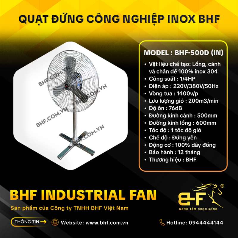 • Toàn bộ lồng, cánh và chân đế được làm bằng inox SUS304 có khả năng chịu được nhiệt độ cao, chống rỉ sét, oxy hóa và các chất ăn mòn như hơi axit nhẹ