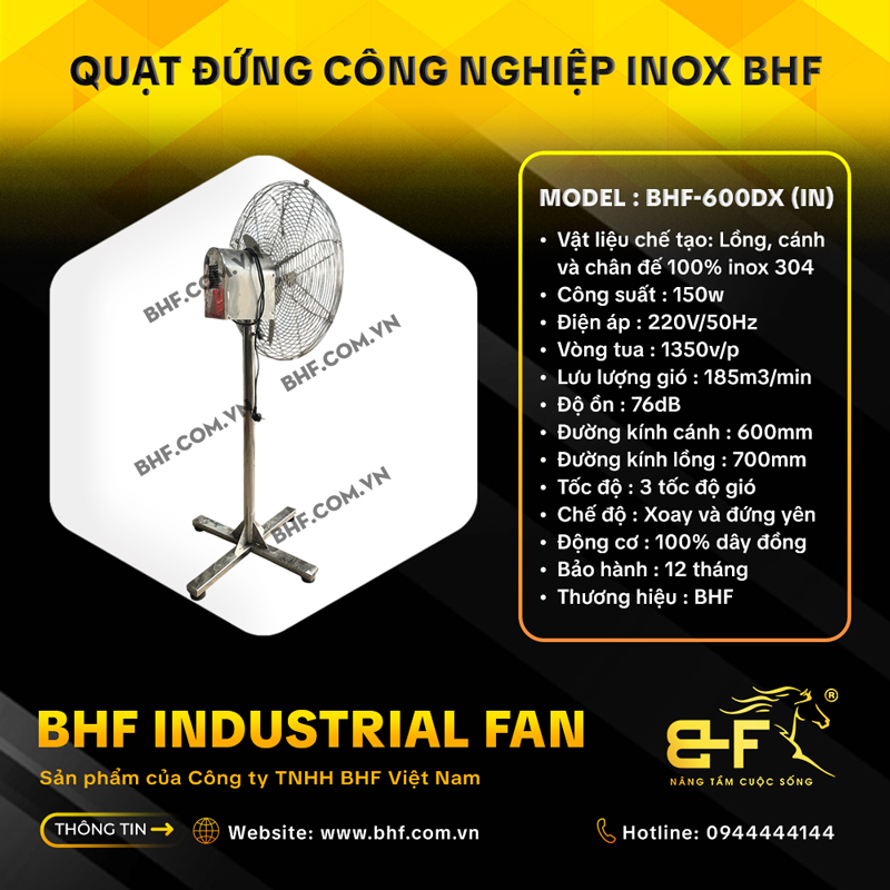 • Toàn bộ lồng, cánh và chân đế được làm bằng inox SUS304 có khả năng chịu được nhiệt độ cao, chống rỉ sét, oxy hóa và các chất ăn mòn như hơi axit nhẹ