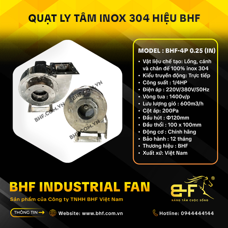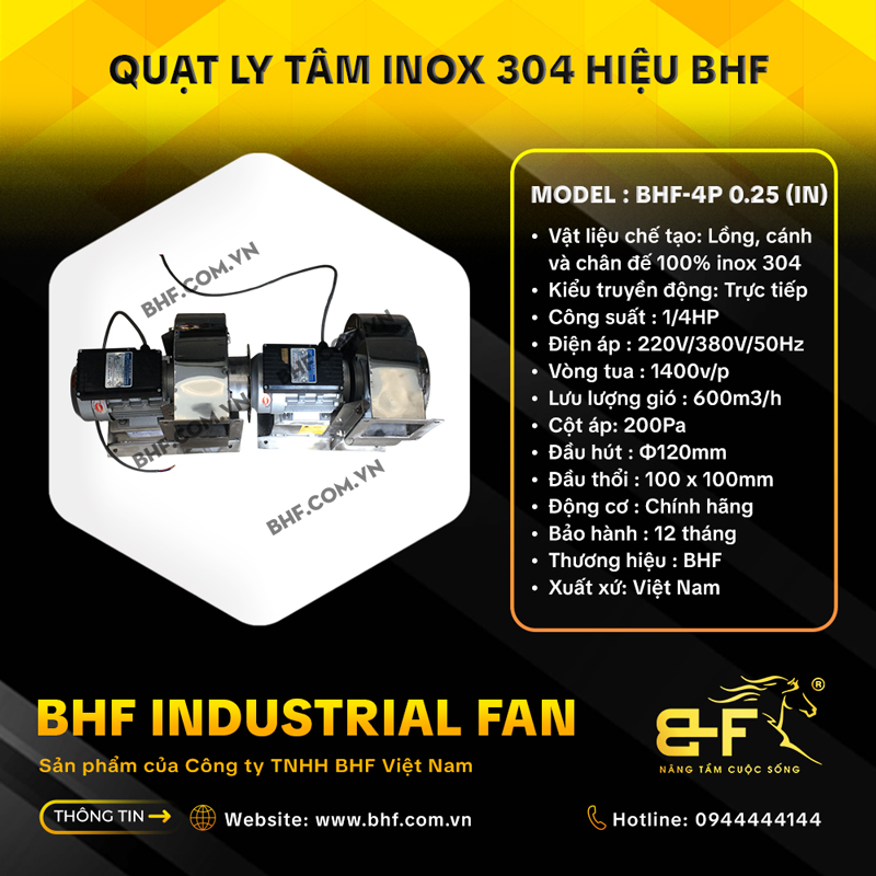 • Quạt ly tâm mini inox BHF-4P 0.25IN có khả năng chịu nhiệt cao, chống lại oxy hóa và các chất ăn mòn như hơi axit nhẹ.